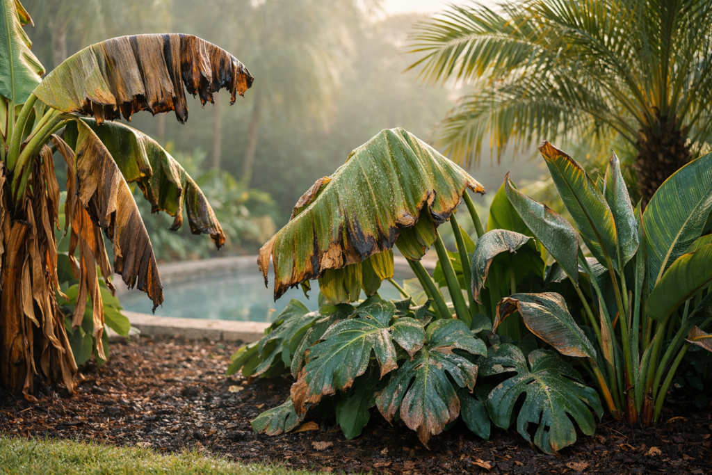 Freeze damage reflects how moisture inside plant tissue responds to sudden temperature shifts. In humid climates, visual decline may last longer because moisture slows drying and recovery.