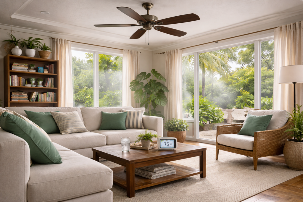 Ceiling fans are frequently recommended as a solution for humid indoor spaces. Many homeowners assume that if a room feels less sticky with a fan running, the humidity problem has been addressed. This belief is especially common in warm, coastal, and subtropical climates where ceiling fans are used year-round. While ceiling fans can improve comfort, they do not remove moisture from the air.